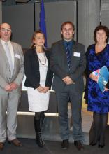 Foto lancering Compendium, vlnr: Dirk Van Melkebeke (Secretaris-generaal EWI), Rudy Herman (senior onderzoeker EWI; voorzitter expertengroep Compendium), Ann-Katrien Lescrauwaet (Vlaams Instituut voor de Zee (VLIZ); Compendium-secretariaat), Jan Mees (directeur VLIZ), Ingrid Lieten (minister van innovatie) en Carl Decaluwé (gouverneur West-Vlaanderen).
